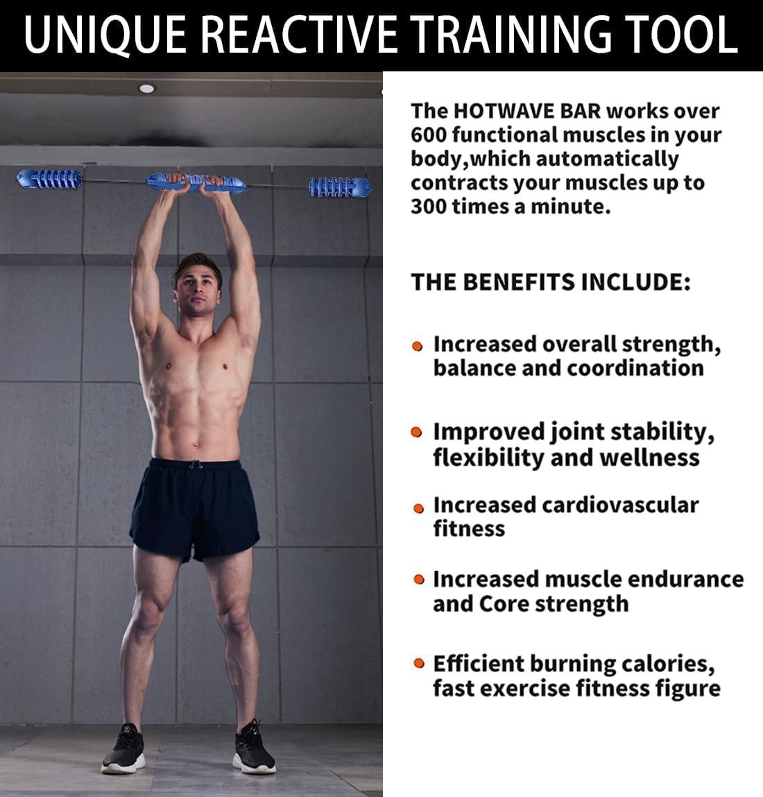 【SPECIAL MATERIALS】The hotwave bar is made of special polymer materials with strong Elastic resistance and safety. It targets specific muscle groups throughout the body by varying the positions of the body or direction of the flexing blade.resulting in enhanced coordination, flexibility, posture, and efficiency of muscle function.