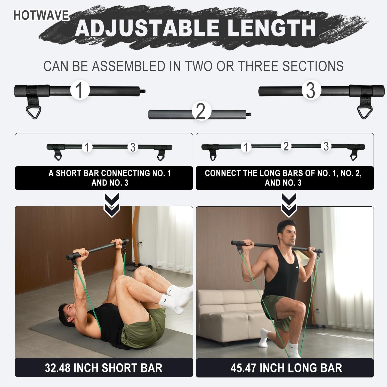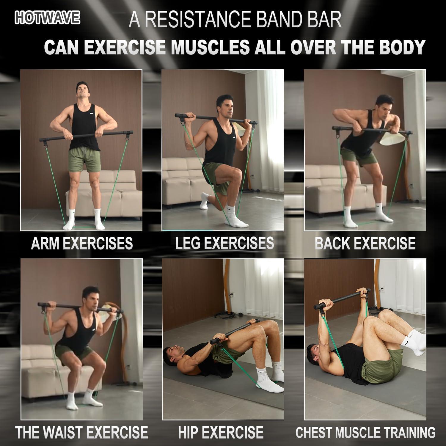 【Full Body Workout】 The HOTWAVE resistance Band bar is the perfect combination of resistance bands for efficient exercise, 33″/45″ two lengths available for different heights and exercise areas. Complete upper body and lower body exercises